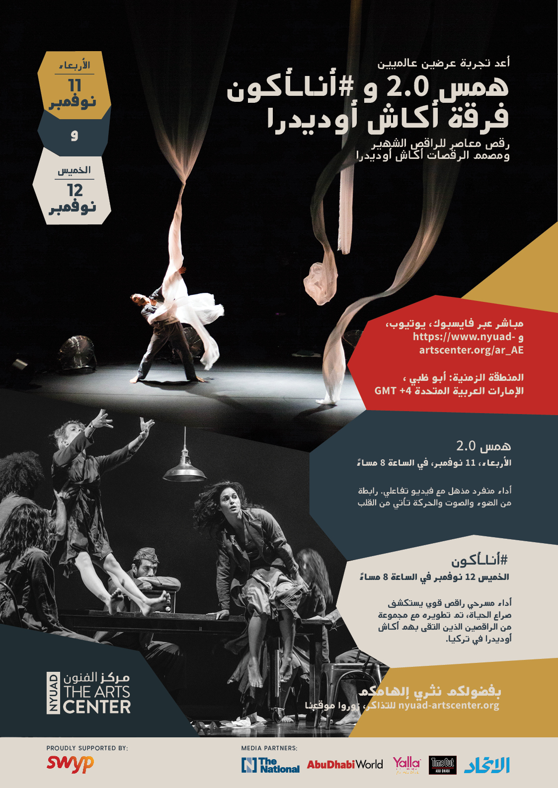 This all gives them a special place in the history of contemporary dance in the UAE and shows the role NYUAD plays in it. Both performances, presented live on stage at the Arts Center in 2016 and 2018, will be revisited online this week.