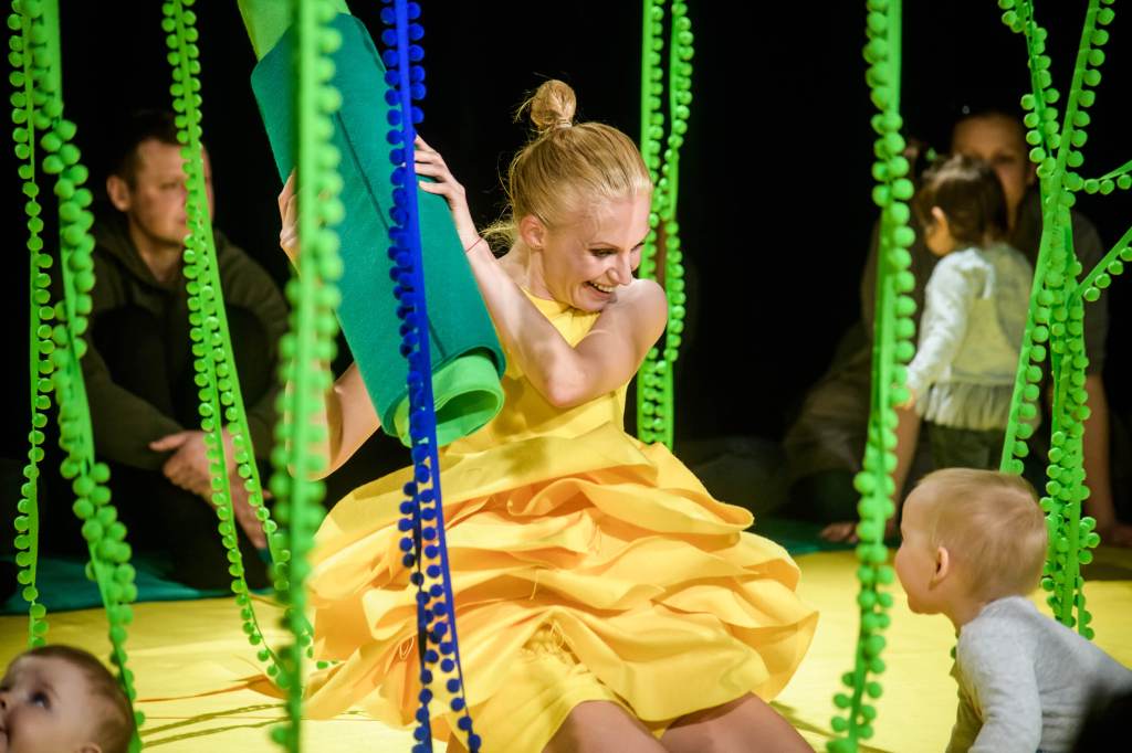Full of secrets, colored and soft meadow in which children together with the dancer are engageed to seek adventure and look for treasures, experience joy of discovery and communication, share their impressions and emotions. The form of performance-installation allows children to explore dance and environment without limitations in time needed to get involved.